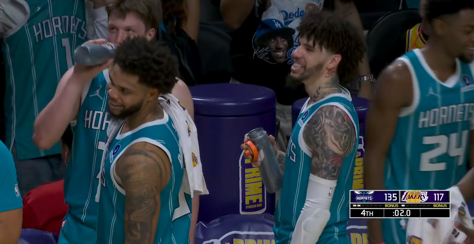 黄蜂打出了他们可能是本赛季至今为止最精彩的一场比赛,135:117大胜湖人18分。首发5人组4人得分超过19分,三个20加,展现了非常全面和团队的表现。尤其是下半场,黄蜂灌了湖人整整71分完成逆转,湖人最多领先13分,到最后却输了18分。